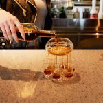 - Luego dispensa ese oro líquido a todos los vasos de chupito que se encuentran debajo y boom, tienes tragos para seis casi al instante.