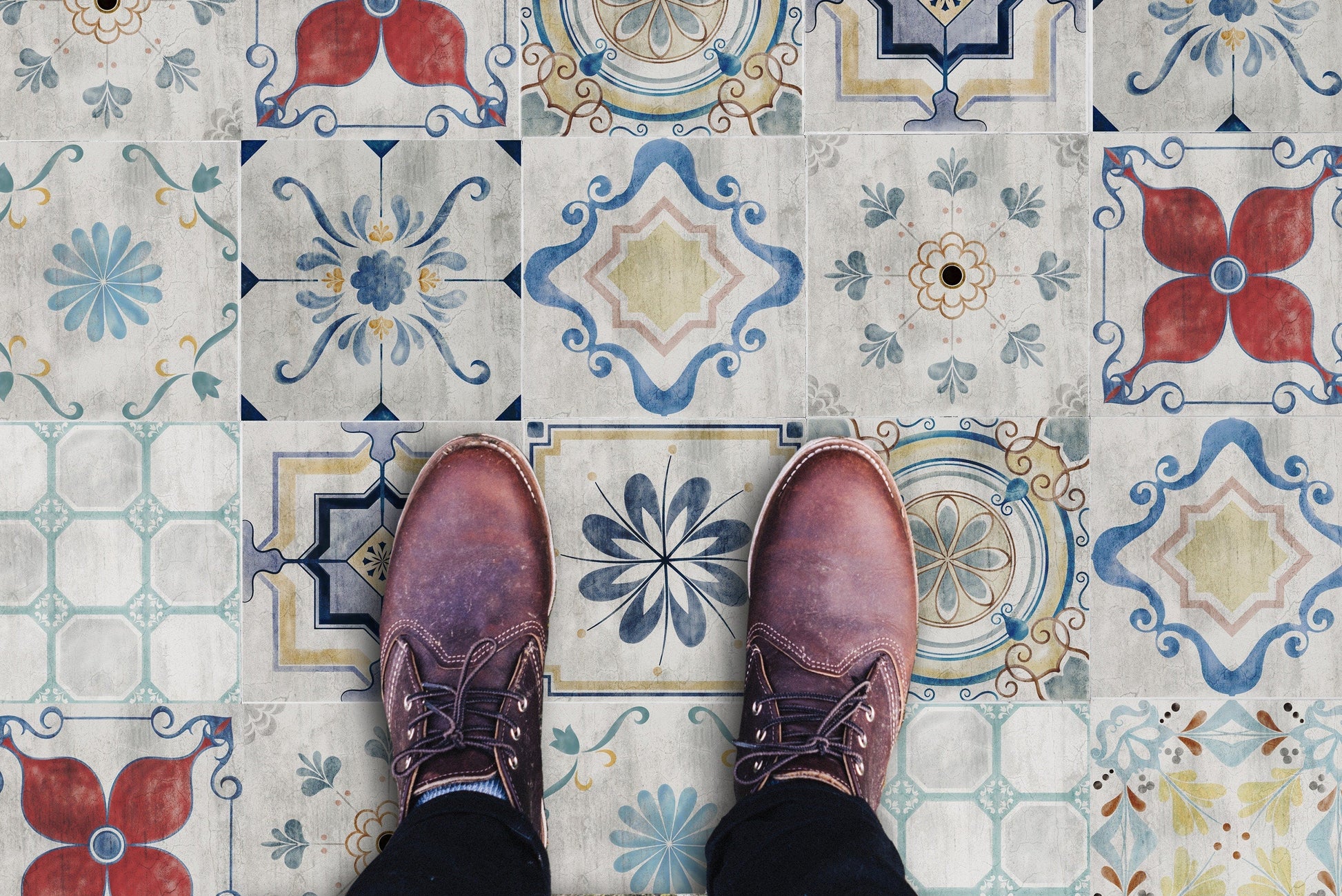 A set of self-adhesive removable tiles features, original designs and illustrations, which can be applied and peeled.