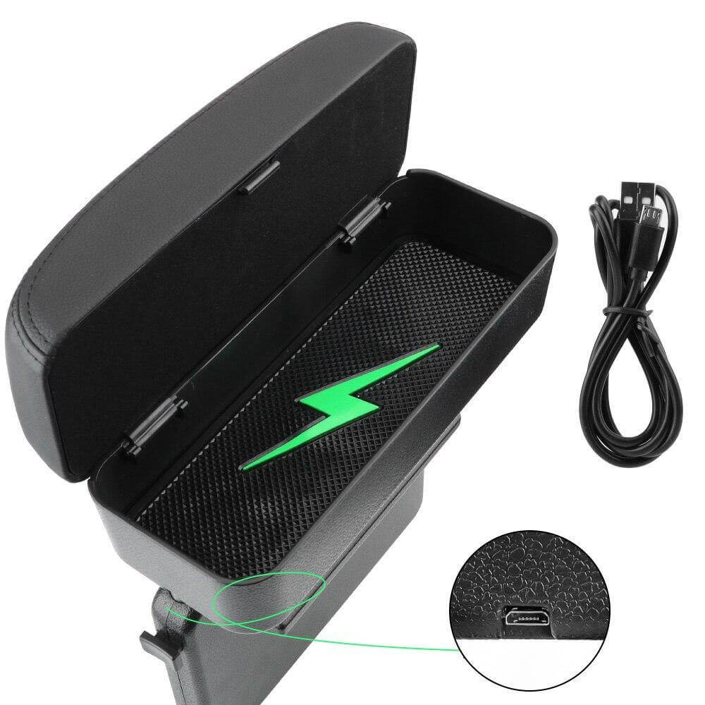 This armrest looks great and organizes the items in your car. It also has a wireless charging feature.
