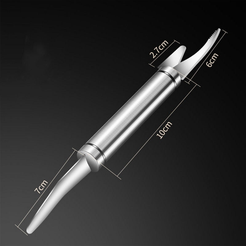Quickly removes fish scales/ shrimp shells and lines, opens fish maw, butterflies shrimp, peels duck/chicken/pig intestines.