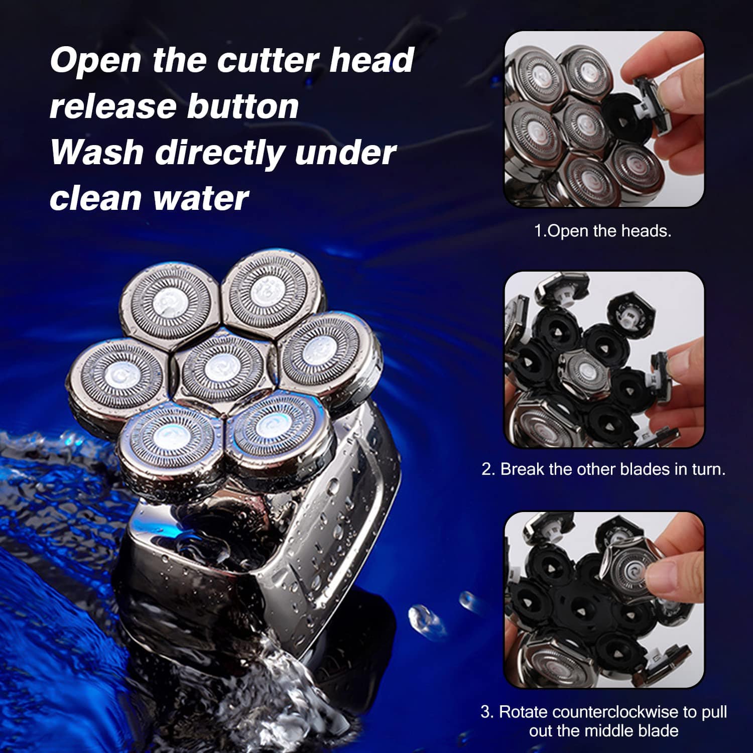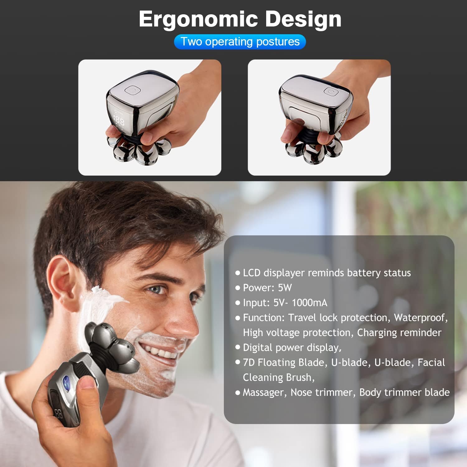 3D rotatory 7D Blade Head is the most prominent feature, fits the facial contours to accurately capture the long and short beards, and brings you a more comfortable head hair-shaving experience!