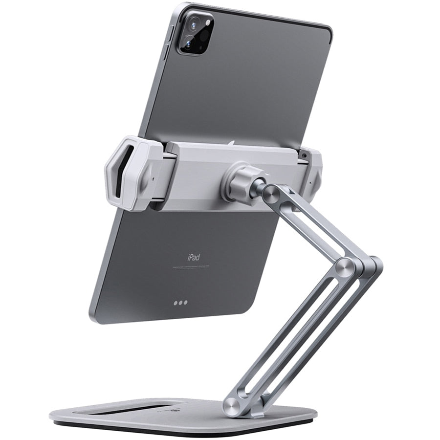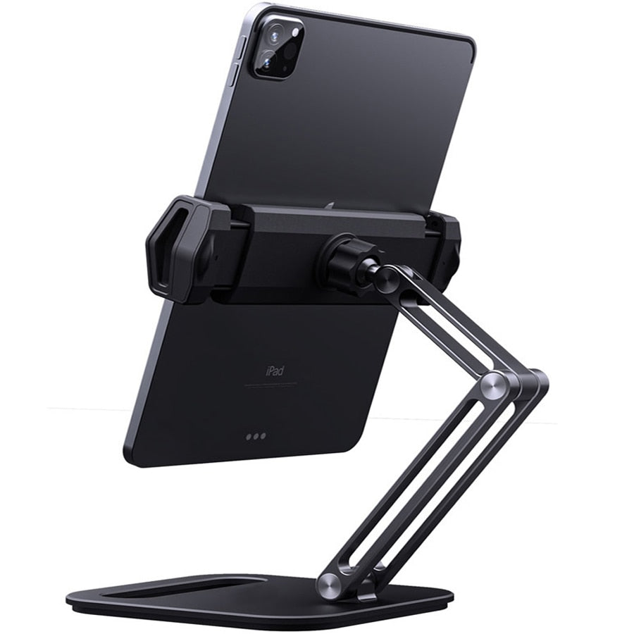 Long Arm Aluminum Alloy Tablet Stand Adjustable Folding iPad Stand Ergonomic 360°Rotatable Tablet and Phone Clamp Mount Holder
