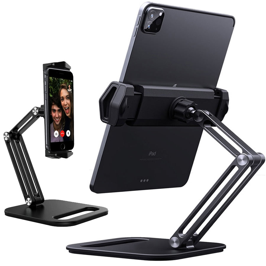 【Universal compatibility】: The desktop tablet stand holder is suitable for most cellphones and tablets. Both ends are expandable, and the retractable size ranges from 5.1” to 9.1”. compatible with iPad, iPhone, iPad Pro, iPad Air, Surface Pro, Galaxy Tab and more. Tip: For 12.9” iPad, we recommend removing the iPad case