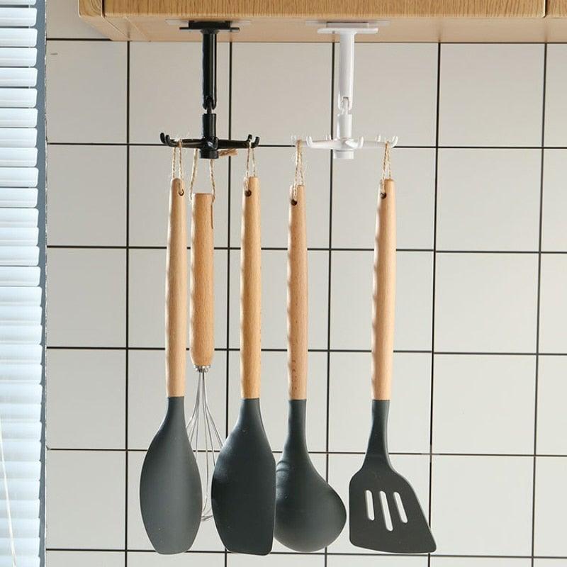 - ROTATION: 360 Degree Rotatable Kitchen Hooks with 6 hooks are easy to hang and take the storage needs of the kitchen.