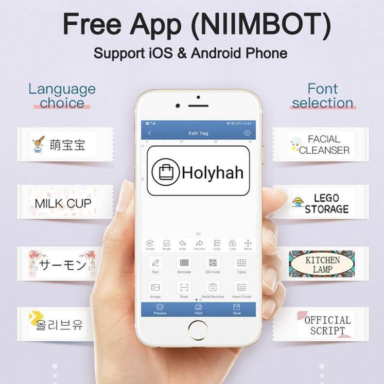 Free App: You can scan the QR code to download the Free App. It supports printing various texts, numbers, graphics, symbols, logos, barcodes, QR codes, etc. And intelligent recognition of voices and pictures.