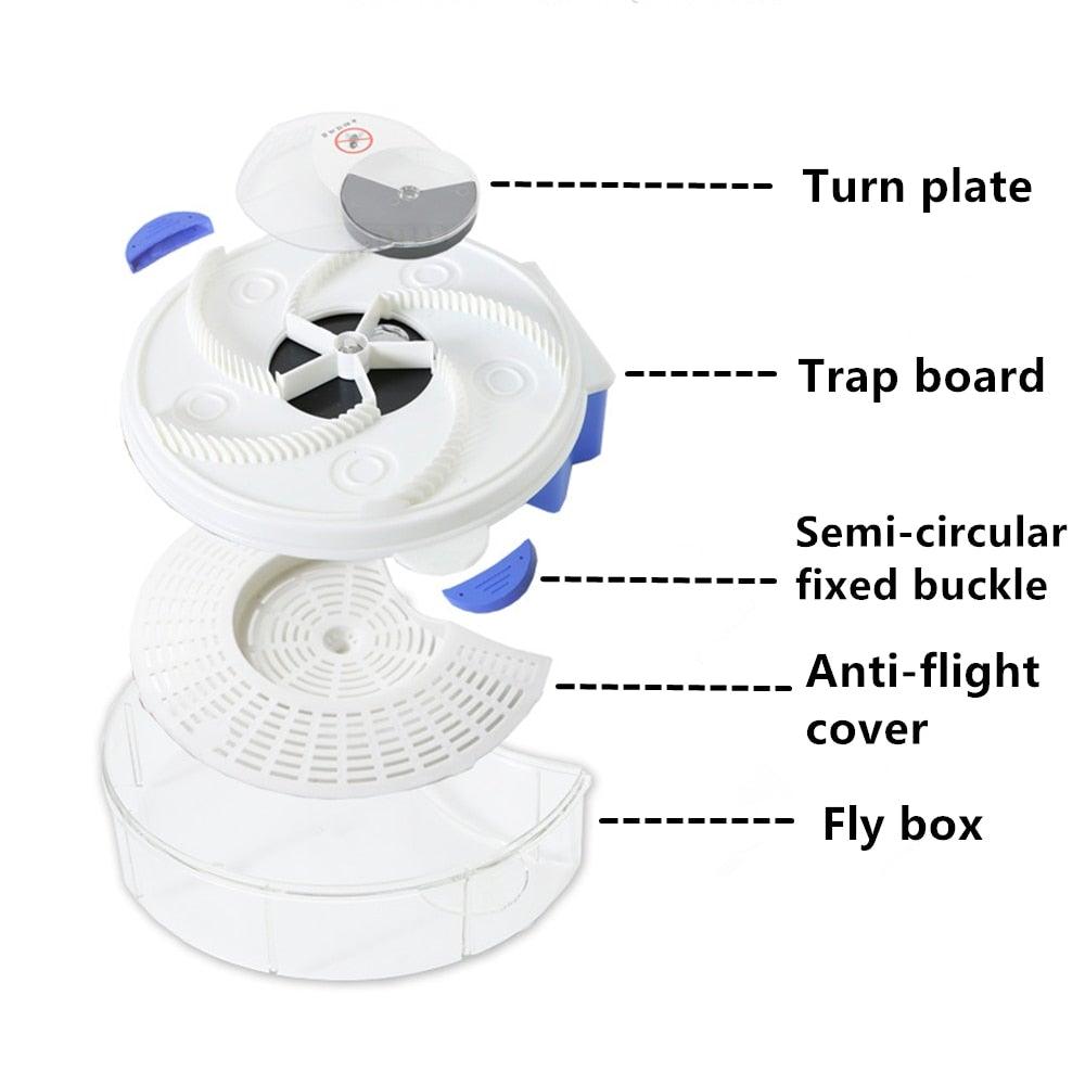- USAGE: Place sugar water or soft crumbs of food in the five bait stations located on the trap. When the flies are feasting, the rotating arm sweeps over them to trap them inside. Unplug the red stopper on the bottom to empty tray.