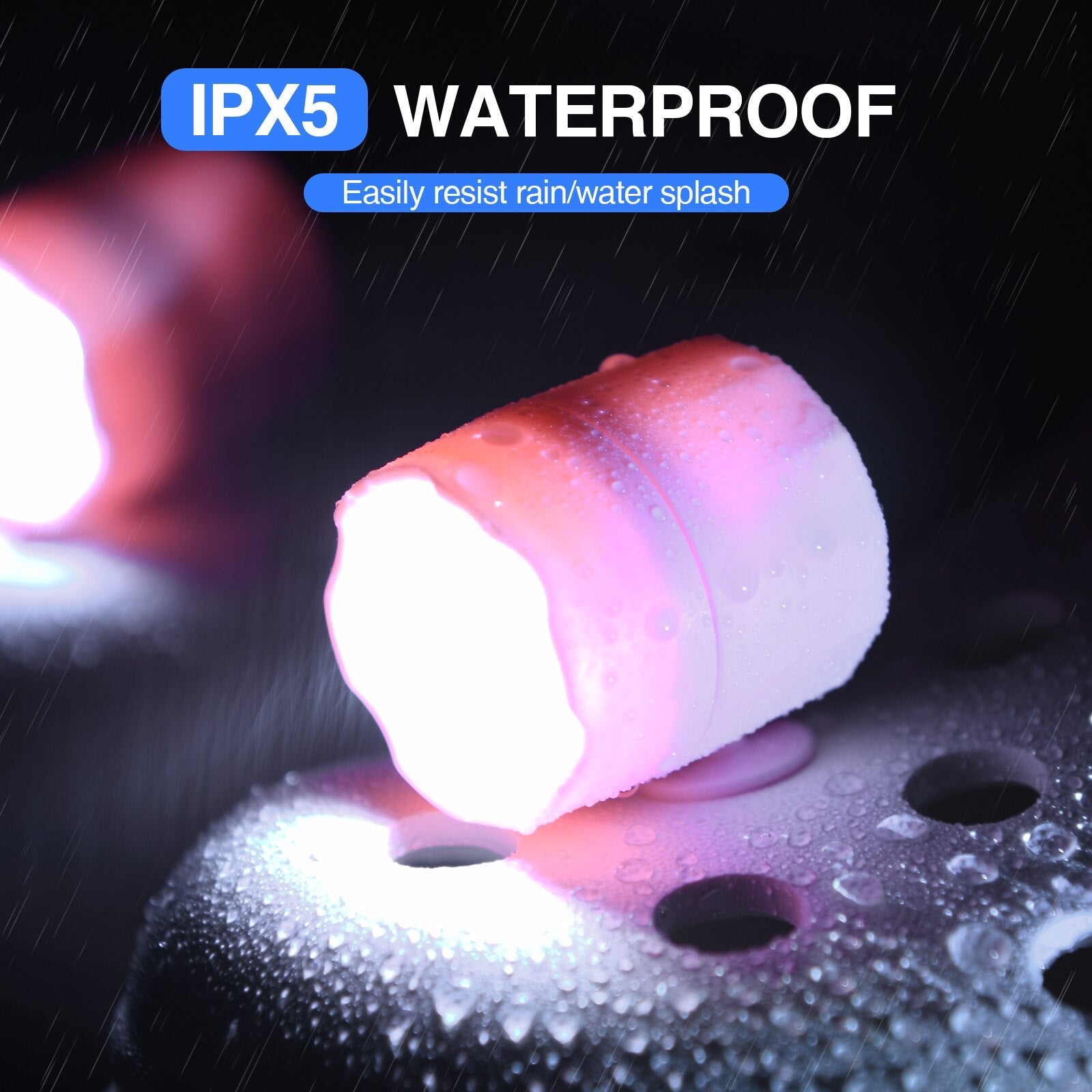 [Light and strong] These headlights for your Croc shoes are made of ABS plastic, each weighing only 25 grams. When you walk or run, they stay stable and you don't even notice. IPX5 waterproof quality can easily cope with rainy weather or outdoor camping dew.